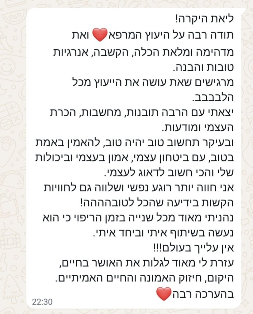 הייעוץ הוא ריפוי להתחבר לנשמה שלך ולהאמין בדרך שלך.